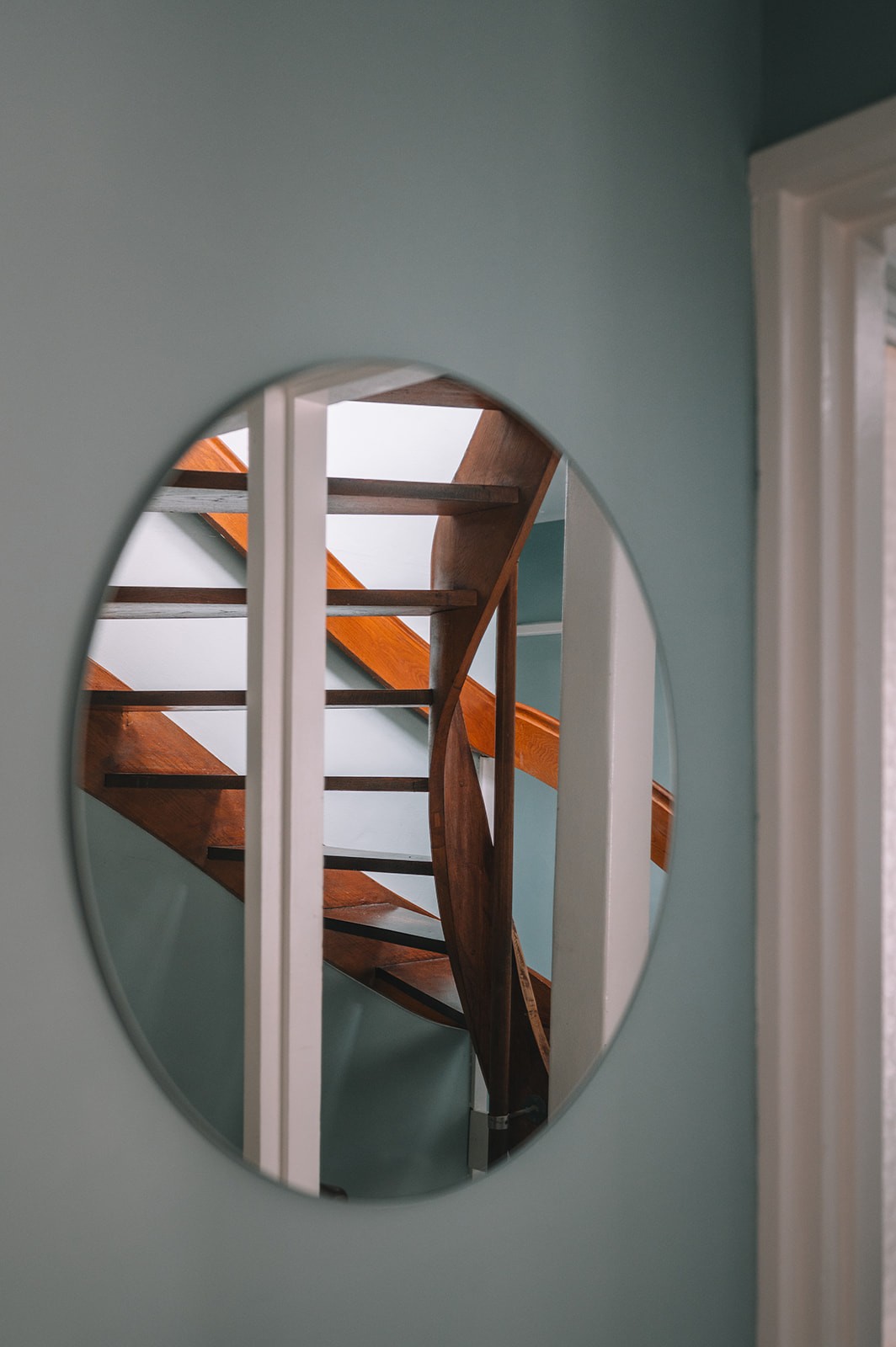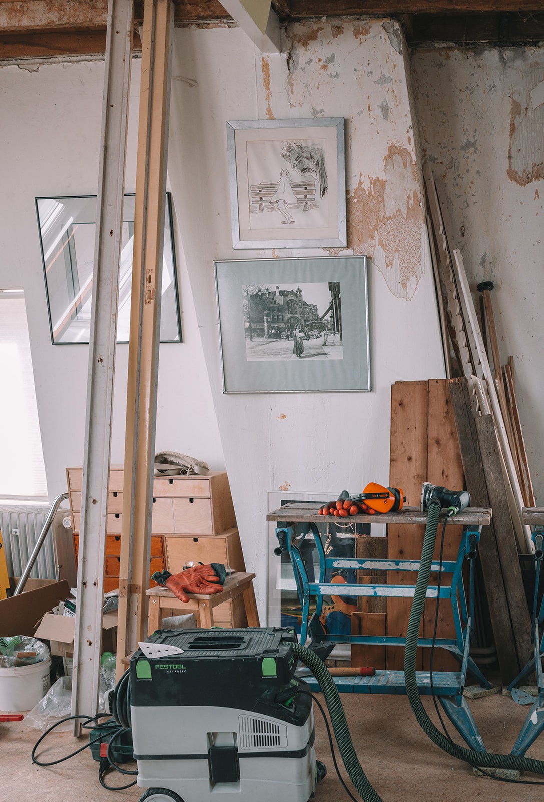 Alles in huis ademt creativiteit én duurzaamheid. Er gaat vrijwel niets de prullenbak in! Jeroen: 'Op de slaapkamer heb ik met mijn zoon, steen voor steen de schoorsteenschacht afgebroken en alle stenen hergebruikt voor een plantenbak in de tuin'. In de keuken hangt de kroonluchter van de oma van Jeroen, het wandmeubel in de woonkamer heeft Angela zelf gemaakt met oude kasten van de huisarts en overal in huis is wel kleur of een printje te vinden. Angela: 'Ik vind veel leuk, zoek altijd naar kleur en vind het ook mooi dat je nu nog in bepaalde elementen in huis ziet dat hier eerder een dokterspraktijk heeft gezeten.'