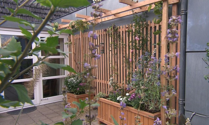 Groen op het balkon blijft lastig. De tip van Martin? Gebruik niet teveel kleine potten, maar denk groot. Twee grote plantenbakken zorgen voor veel meer groen op je balkon dan tien kleintjes. In Zaandam maakt ‘ie er weer een feestje van en creëert een afscheiding van boomschors, planten aan de reling en een grote plantenbak. Groen genieten hoor.