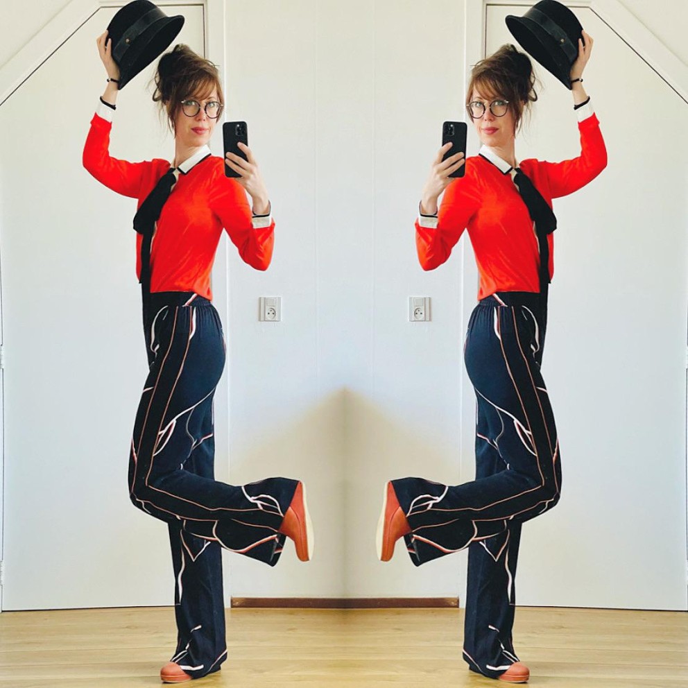 Maar de verleiding om nieuwe kleding te kopen ligt ook bij Nichon voortdurend op de loer: ‘Omdat ik met mode bezig ben krijg ik op mijn Instagram (@up for swaps) op alle algoritmes kledingadvertenties te zien. En plopt er zo een advertentie met een broek op die ik zo mooi vind! Maar ik laat het aan me voorbijgaan.’
