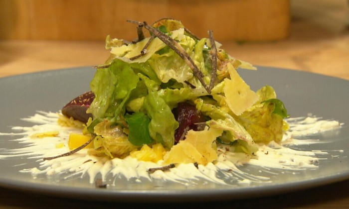 Gepofte zoete aardappelen tussen de kooltjes van de BBQ, dat is een knap staaltje slow cooking! Alle tijd om zelf tapenade erbij te maken van paddenstoelen met citroenmascarpone.