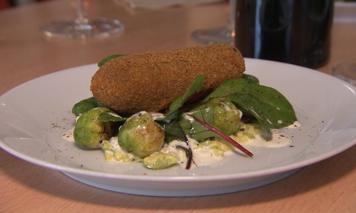 Serveer de kroketten met de friet, de mayonaise en de salade.
