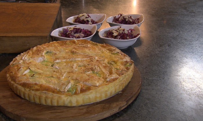 Broccolitaart met blauwe kaas en gebakken amandelen