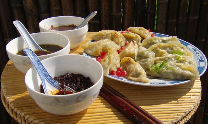 Vul de velletjes deeg en vouw ze dicht. Leg ze in een stoommandje en stoom ze in 6 a 7 minuten gaar.