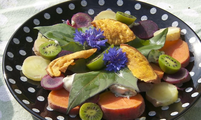 Snijd de ansjovisjes in kleine stukjes en verdeel deze over het vlees. Druppel er wat balsamicoazijn overheen en wat geraspte truffel. Leg er de mesclun sla op.