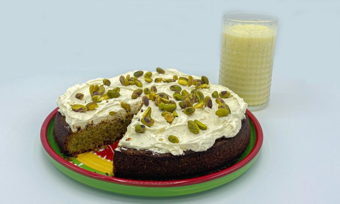Schep het mengsel over de koekbodem in de vorm. Bak de taart gaar in 60 min in het midden van de oven. Laat 1 uur afkoelen in de oven met de deur op een kier en zet daarna 4 uur in de koelkast.