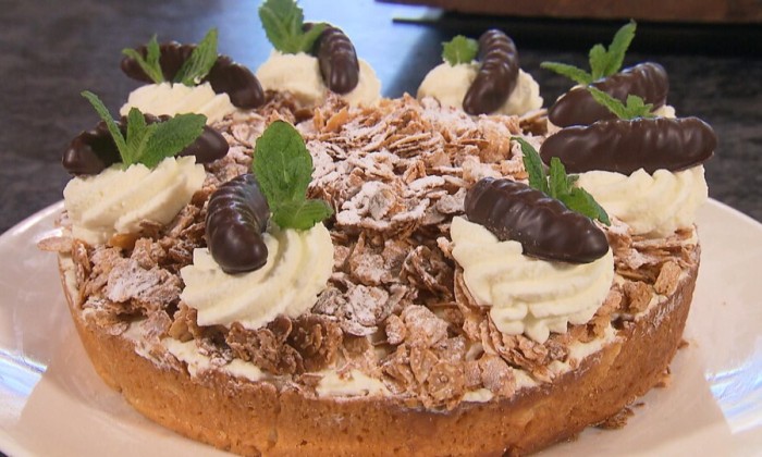 Chocoladetaart met kokos en fruit