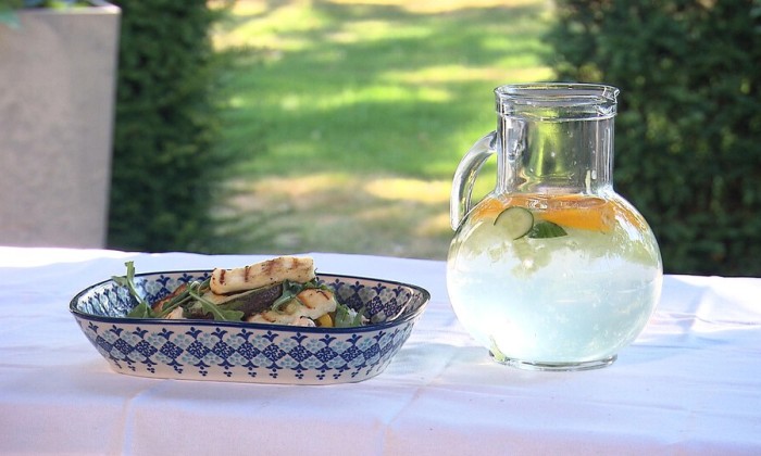 Verhit een scheutje olijfolie in een koekenpan op middelhoog vuur en schep met een lepel kleine hoopjes beslag. Wacht tot je de randen langzaam bruin ziet kleuren en draai de fritters dan voorzichtig om. Bak beide kanten mooi goudbruin. Je kunt dit het beste doen op laag tot middelhoog vuur, zodat de fritters zowel rustig kleuren als gaar worden. De halloumi zal heerlijk smelten.