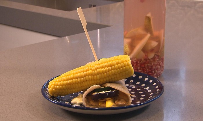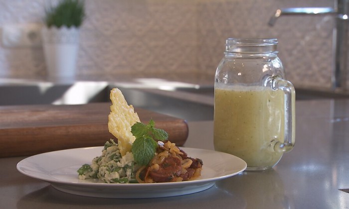 Chef-kok Geneal Harreman maakt een vegetarisch gerecht met gegrilde knolselderij, zwarte kikkererwten-hummus, baba ganoush met verse kruiden en een spinazie knoflooksaus. De aardse smaken van de knolselderij gaan heerlijk samen met de frisse en scherpe smaak van de yoghurt en spinazie knoflooksaus. Klinkt heerlijk toch?