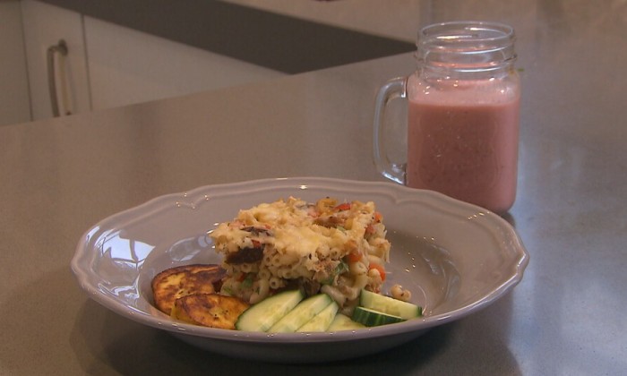 Chef-kok Sharon de Miranda maakt 'kip in de hoed', een taart met een bijzondere combinatie van hartig en zoet, met kippendijen, kerrie, kersen en crème fraîche.