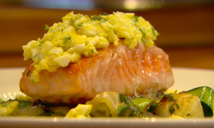 10. Serveer de zalm samen met de artisjokharten. Smakelijk!