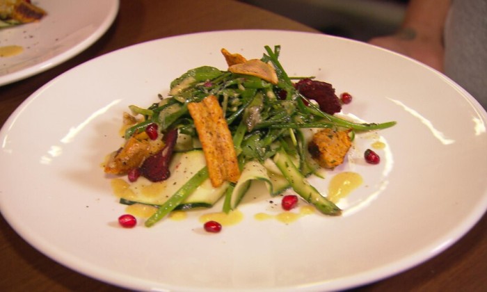 Lekker voor de herfst! Onze chef-kok Sharon de Miranda maakt tandoori met knolselderij, verrassende friet van groene bakbananen en een royale salade met kikkererwten, olijven, feta en frisse peterselie.