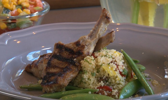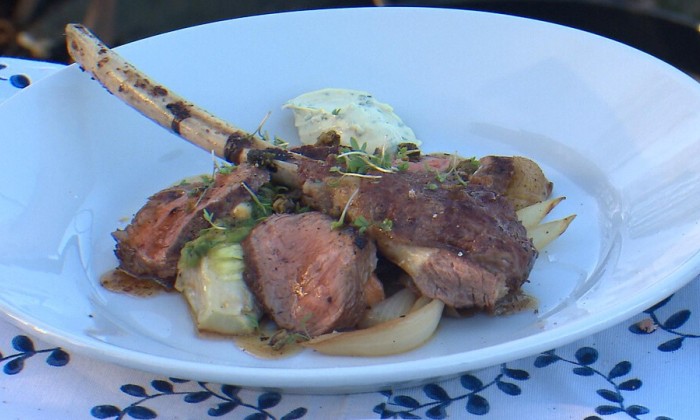 Culinair expert Alain Caron maakt van de AVG een avontuur. Hij creëert van aardappelen en meiknol een heerlijk bedje voor de lamskotelet en sluit het af met een romige jus met salieblaadjes.