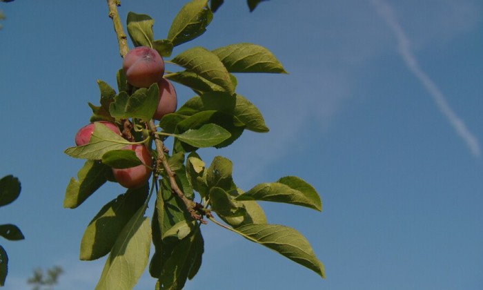 Halveer de pruimen en verwijder de pit. Snijd de pruimen in mooie partjes en verdeel royaal over de besuikerde bodem.