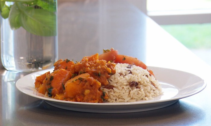 Giet de pompoen af en prak het grof met een vork, breng het op smaak met zout/peper.