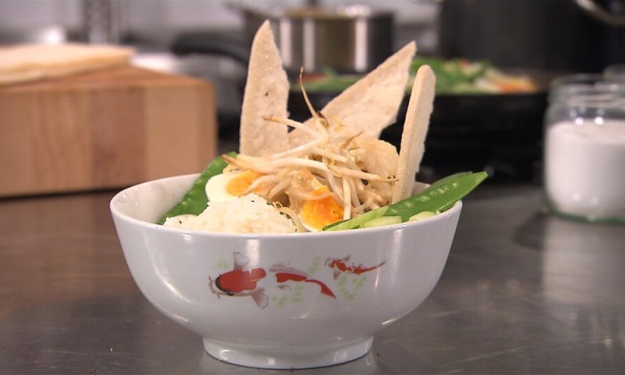 Onze chef-kok Ramon Brugman staat in de keuken met Rob Jetten. Zij maken een Indische rijsttafel met zelfgemaakte bloemkool smoor. Bij de toko halen ze sticky tempé, cassave kroepoek, atjar en gebakken uitjes. Dit zet je dus eigenlijk zó op tafel!