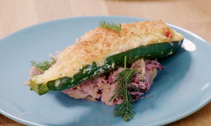 Strooi er wat paneermeel over en bak deze ovenschotel in ongeveer 25 min af in de voorverwarmde oven.