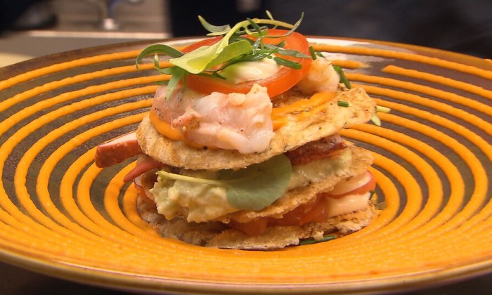 Jetske van den Elsen deelt haar favoriete sandwich recept: een verrassende combinatie van goudbruin geroosterd brood, gesmolten kaas, roze zuurkool, jalapeño's en ribbelchips, afgemaakt met een heerlijke honing-mosterd-dillesaus.