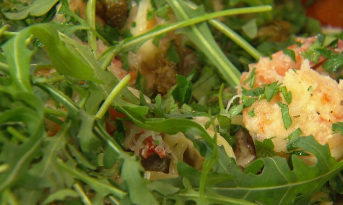 Perfect voor een warme zomerse avond; dit vlotte bord pasta met krokant gebakken kip en sperzieboontjes. Onze chef Sharon maakt de pasta Alfredo helemaal af met een fris venkel-aardbei watertje.