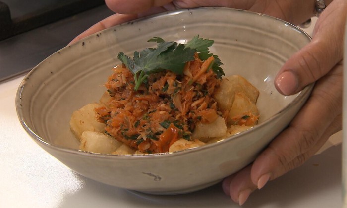 Chef-kok Sharon de Miranda maakt een kruidige stoof van de kwie kwie, een typisch Surinaamse vis. Deze vis is heerlijk in combinatie met masala, kousenband en Madame Jeanette peper. Probeer jij het ook?