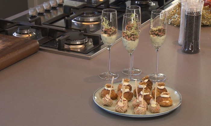 Amuses kunnen natuurlijk niet ontbreken in het kerstmenu! Deze twee zijn lekker, simpel, zitten bomvol groenten en zijn een goede toevoeging aan je kerstmenu. Onze chef-kok Geneal Harreman maakt gevulde kastanje paddenstoelen met een dip van noten en bloemkool in tempura met een spicy sausje. Een spannende combinatie door de zure en zoete ingrediënten.