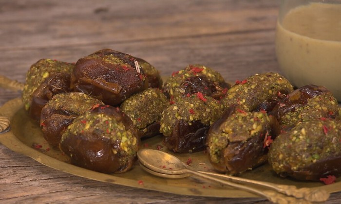 Gevulde dadels met pistache en romige banaan-avocado shake