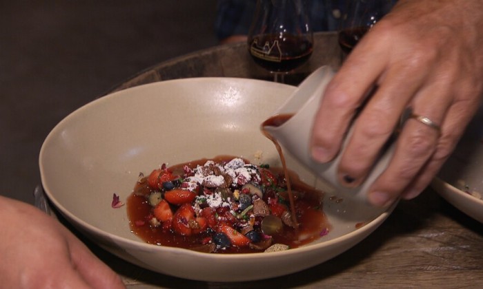 Rabarbercoulis met rood fruit en geitenyoghurt