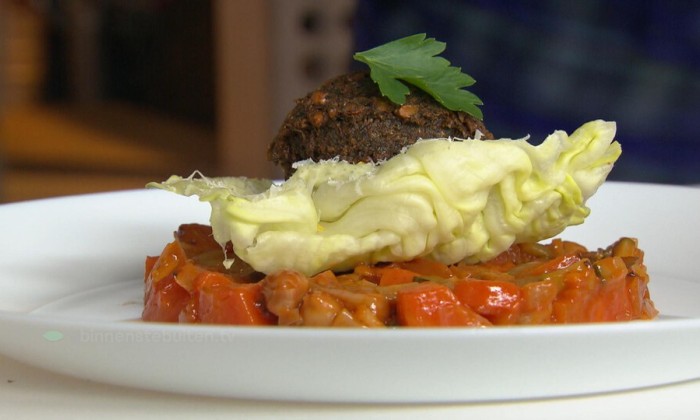 Kalfsrollade met biologische spruitjes en zalmeitjes