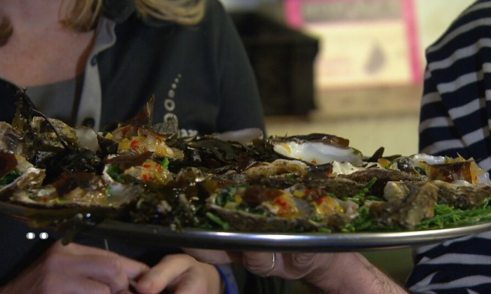 Oesters met spinazie en zeewier