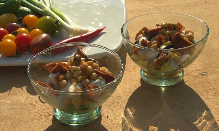 Zeeuwse kikkererwt fetteh met aubergine