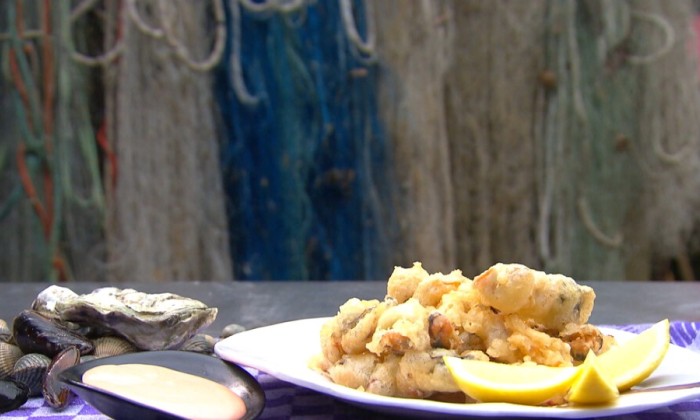 Coquilles st. Jacques met sabayon van Japans duizendknoopbier