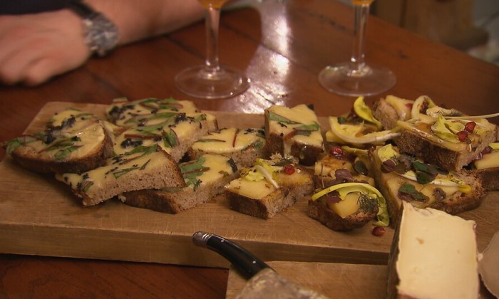 Twee soorten toast met puur geserveerde bergkazen