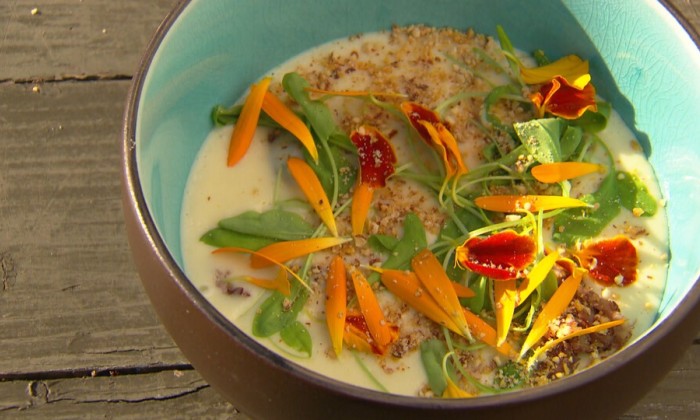 Gepofte knoflooksoep, bietensalade en een winterse cocktail