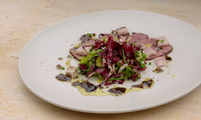 Salade met gerookte paling en ganzenborst