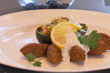 Chef-kok Sharon de Miranda maakt een vegetarische maaltijd voor niet al te veel geld: falafel van witte bonen en een voedzame linzensalade met avocado en dadels.