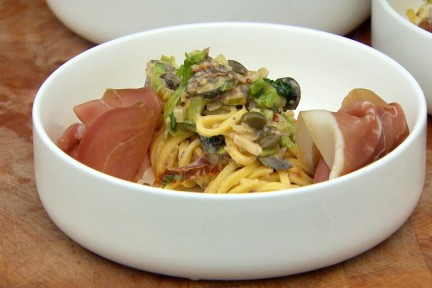 Spaghetti met andijvie en ham