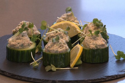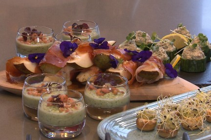 In de week voor kerst maken alle koks van BinnensteBuiten één gang voor het BinnensteBuiten kerstdiner. Alle gangen zijn natuurlijk ook afzonderlijk te maken, maar vormen samen een mooi diner. Kies er dus van wat je lekker vindt of maak het allemaal. Sharon de Miranda bijt het spits af en maakt amuses. Ze maakt onder andere een slasoepje met garnalen, peer en gorgonzola gerold in ham en gevulde champignons.