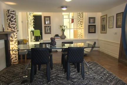 Het statige pand uit de vorige eeuw aan de Amsterdamse grachten heeft echt eyecatchers in het interieur. Er staat een kleine privébioscoop in de kamer en er hangt een paard aan het plafond. Het zou zomaar uit de lucht gegrepen kunnen zijn, zoals het paard in de gang uit de carnavalskraker van André van Duin, maar in het geval van bewoner Jeroen Panders is er geen woord van gelogen. Hij wil met zijn opvallende interieur mensen een brede grijns op het gezicht bezorgen.