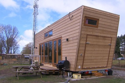 Jorn en Anneloes bouwen voor slechts 5000 euro in Culemborg een zelfvoorzienend huis van recyclemateriaal en Paulien en Carlo bouwen een tiny house in de wijk Minitopia in Den Bosch.