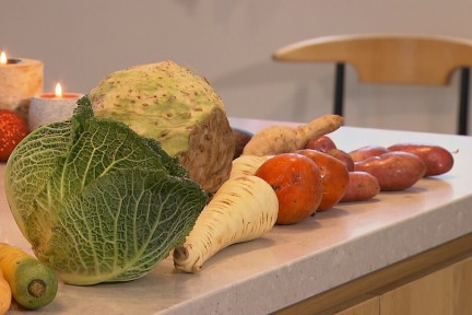 In de week voor kerst maken alle koks van BinnensteBuiten één gang voor het kerstmenu. De gangen zijn ook los te maken, maar vormen samen een mooi diner. Kies er dus van wat je lekker vindt of maak het allemaal. Culinair expert Alain Caron is in Ens in Flevoland bij biodynamische boer Krispijn van den Dries. Hij heeft prachtige groenten liggen, waarmee Alain zijn hoofdgerecht van gelakte kip garneert.