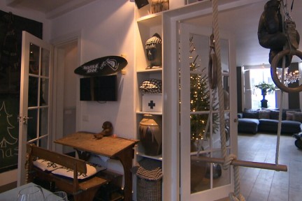Petra en René Peters wonen met hun zoontje in het prachtige Brabantse vestigingsstadje Heusden. Aan de voorzijde van hun historische huis mogen Petra en René bij de koop in 2008 dan ook niets wijzigen. Binnen daarentegen is alles veranderd en laten Petra en René de authentieke sfeer en stijl van vroeger weer naar voren komen. Petra heeft een voorliefde voor grote robuuste voorwerpen, volgens eigen zeggen lompe meubels. En die zijn volop aanwezig: de oude kerkbank bij de eettafel, een voormalige transportkar als bijzettafel en de schitterende antieke kroonluchters. Met kerst vinden Petra en René het heerlijk om groots uit te pakken. En dat lukt goed met vijf kerstbomen, ontelbaar veel lampjes, grove kaarsen en uiteraard een immens grote kerstkrans voor deur.
