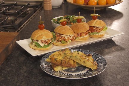 Kipburger van kerst kliekjes met zelfgemaakte barbecuesaus