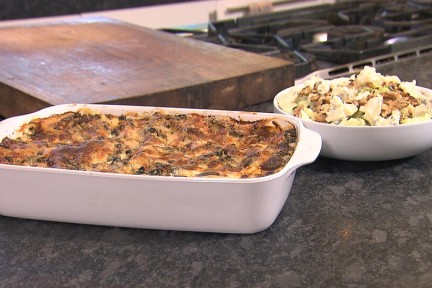 Op deze maandag maakte chef-kok Ramon Brugman een lekkere snelle maaltijd: lasagne met spinazie en zalm. En daar maakt hij nog een salade bij van bleekselderij met gorgonzola en appel.