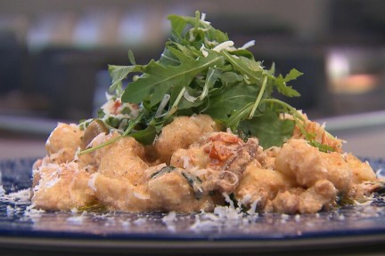 Chef-kok Ramon Brugman maakt gnocchi met saus van pancetta, tomaat en ricotta. Gnocchi betekent eigenlijk gewoon 'klonten'. Dat klinkt misschien niet heel appetijtelijk, maar als Ramon aan de slag gaat met aardappelpuree voor zijn gnocchi di patate met zelfgemaakte saus, loopt het water je in de mond.