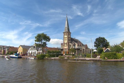 Wie het Friese Woudsend via de brug binnenkomt, ziet de imposante kerk uit 1912 al staan. Het is een opvallend gebouw, vooral door de ligging, direct aan het water. Spelend met een pepermuntje luisterde de kleine Hayo de Vries in deze gereformeerde kerk naar de preek. Nooit gedacht dat hij vele jaren later zou gaan wonen. Hayo en Maaike hebben na een enorme verbouwing van twee jaar er een heel bijzonder woonhuis van gemaakt. Nog veel herinnert aan de periode dat de kerk in gebruik was; de tekstborden met de laatste palmen en gezangen die hier zijn gezongen, hangen nog aan de muur.