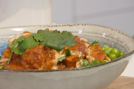 Romige butter chicken met basmatirijst en doperwtjes