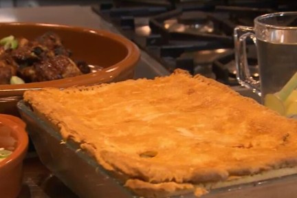Sharon maakt een Surinaamse kippastei, met daarnaast hapklare kippenboutjes met rijst. Op Surinaamse bruiloften ontbreekt het nooit aan deze klassiekers, en dat zie je er aan af.