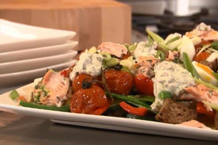 Chef-kok Ramon Brugman maakt een snelle maaltijdsalade met gemarineerde zalm en gepofte groenten.