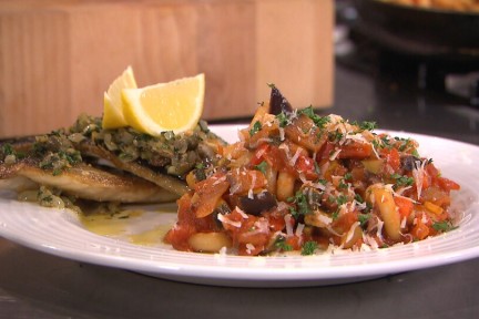 Chef-kok Ramon Brugman bereidt een snelle maaltijd met pasta, gebakken makreel en gebakken ratatouille. Mét tips voor het makkelijk snijden van paprika en het snijden van de makreel