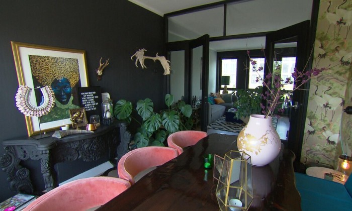 Renske is dol op de kleur roze, maar met vier mannen in huis wist ze niet of ze ze kon overtuigen. Daarom heeft ze het maar gewoon gedaan. 'Het is zo'n warme kleur'. Iedereen was thuis enthousiast en ze mocht het zo helemaal doortrekken naar de bovenverdieping.