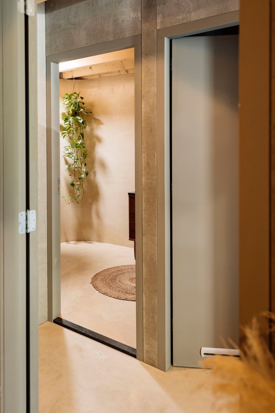 Toen het stel het huis kocht was het een donker hol en daar moest wat aan veranderd worden. Het is nu een heerlijke lichte ruimte. Fleur en Sytze zijn tijdens hun reizen geïnspireerd geraakt door de zachte kleuren en materialen uit Marrokko. Deze aspecten tegenover het robuuste en industriële van de oude fabriek geeft een gaaf contrast. Als je binnenkomt in het huis zie je in een opslag het hele huis, vandaar een glazen wand voor de slaapkamer.
